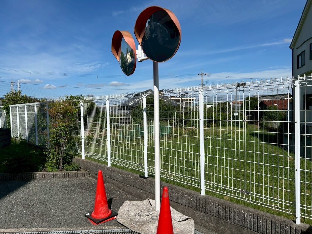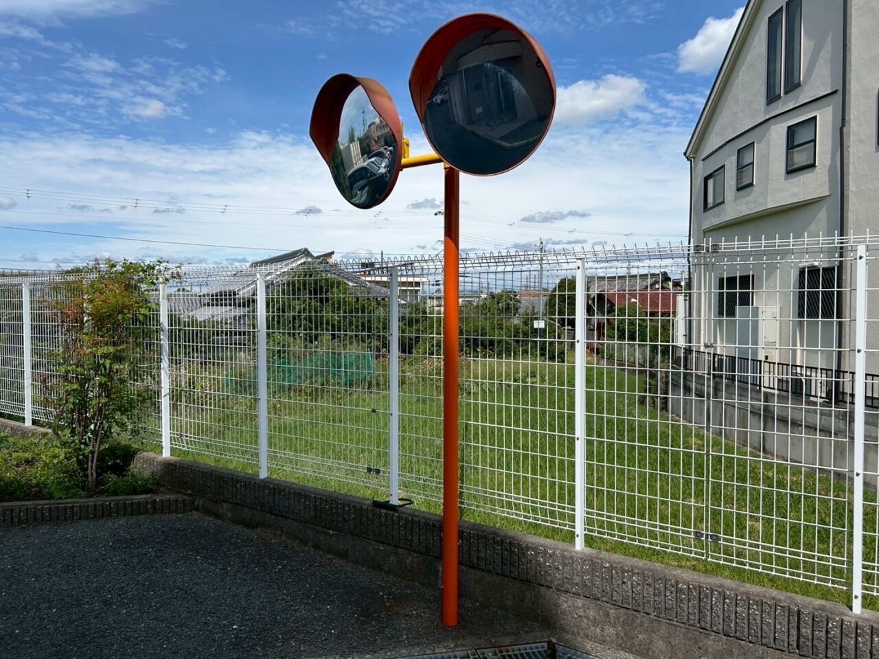 今回ご依頼いただいたのは、交野市内のカーブミラーの塗装工事です。